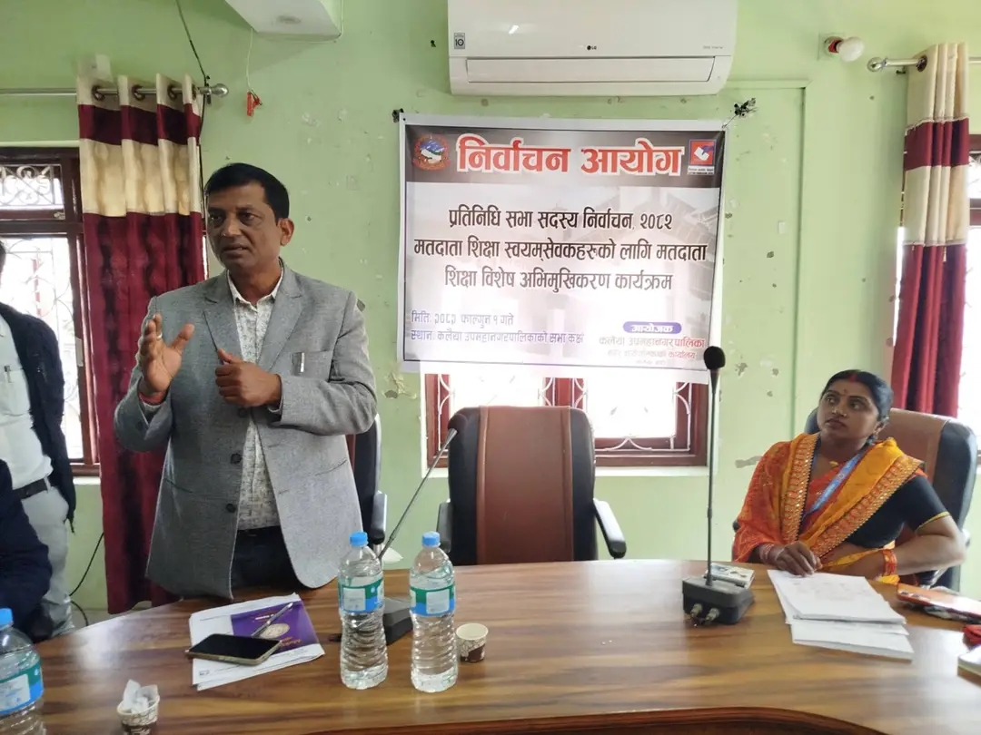 शुक्रबार कलैया उपमहानगरपालिकाको सभा कक्षमा सम्पन्न कार्यक्रममा मतदाता शिक्षा स्वयंसेवकहरूलाई प्रशिक्षण दिइएको हो। कार्यक्रम शिक्षा महाशाखा प्रमुख तथा निर्वाचन फोकल पर्सन राजिव यादवको अध्यक्षतामा सम्पन्न भएको थियो भने निर्वाचन कार्यालय बाराका नायब सुब्बा तथा सूचना अधिकारी मुकेश सिंहले सहजीकरण तथा प्रशिक्षण प्रदान गरेका थिए।